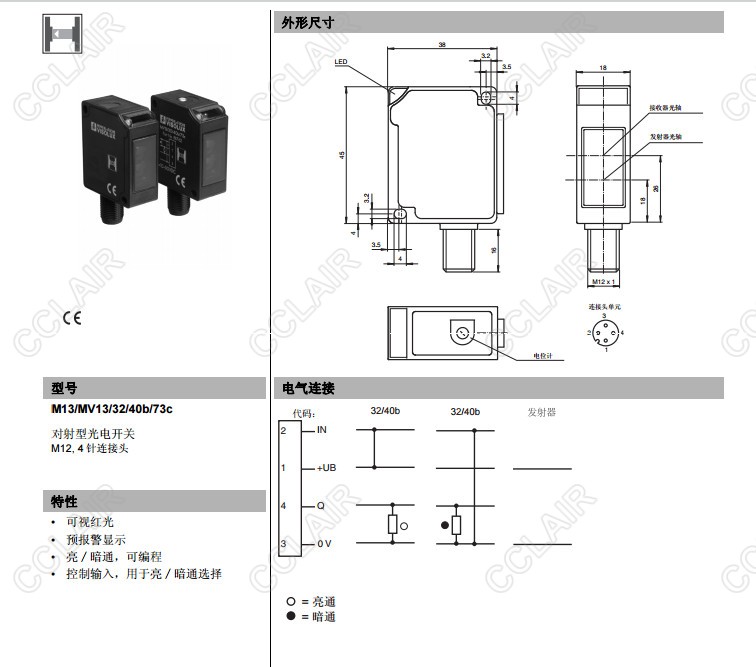 M13/MV13/32/40b/73c,對射型光電開關(guān)