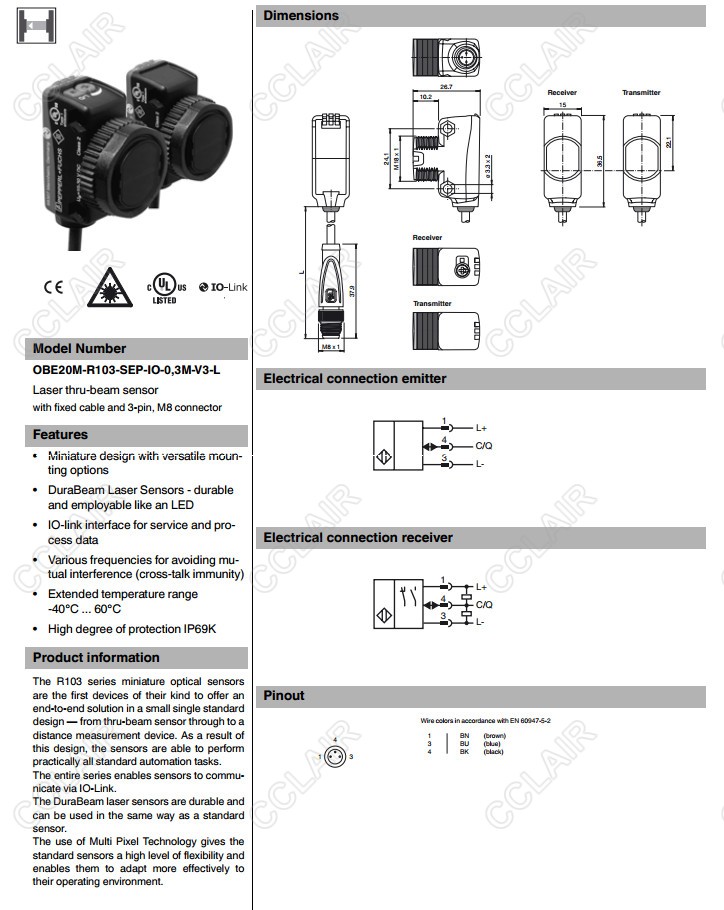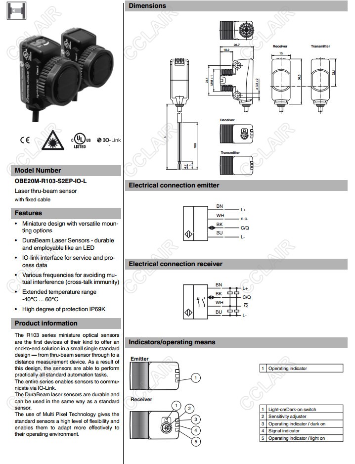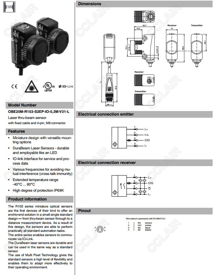 OBE20M-R103-S2EP-IO-0,3M-V1-L,OBE20M-R103-S2EP-IO-0,3M-V31-L,激光對射傳感器