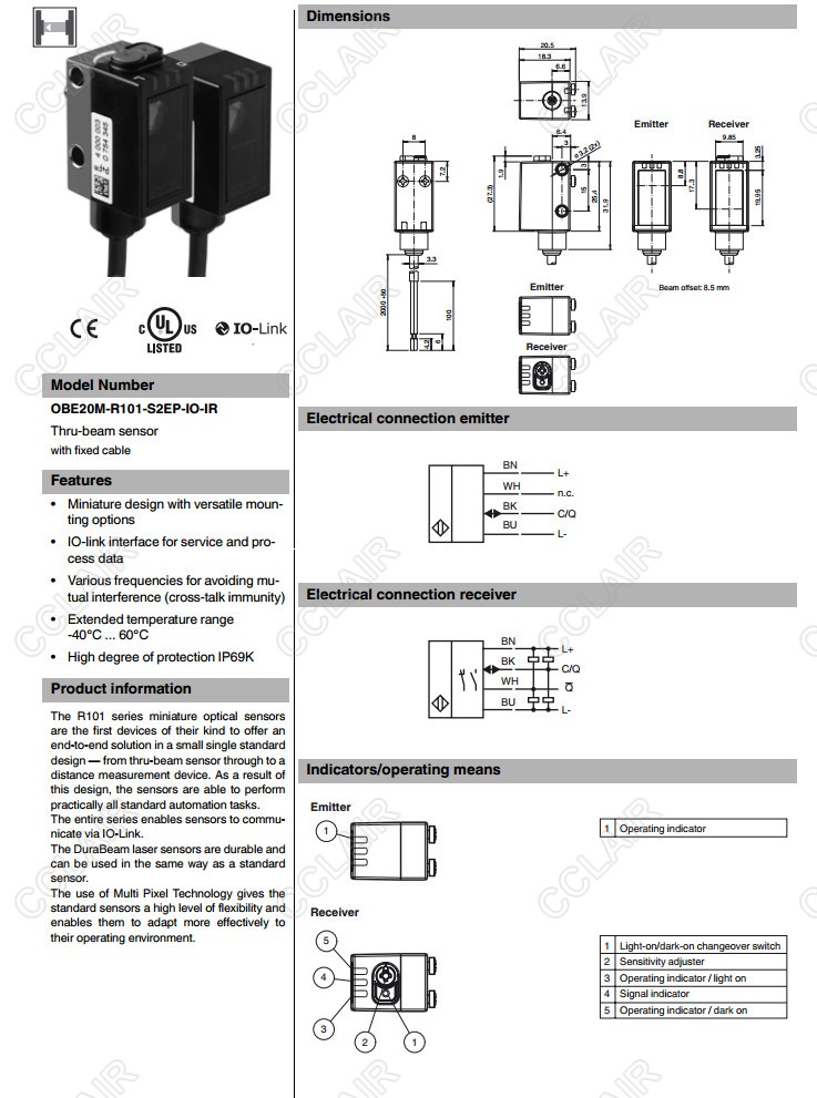 OBE20M-R101-S2EP-IO-IR,OBE20M-R101-SEP-IO-0,3M-V3-L,對射型傳感器