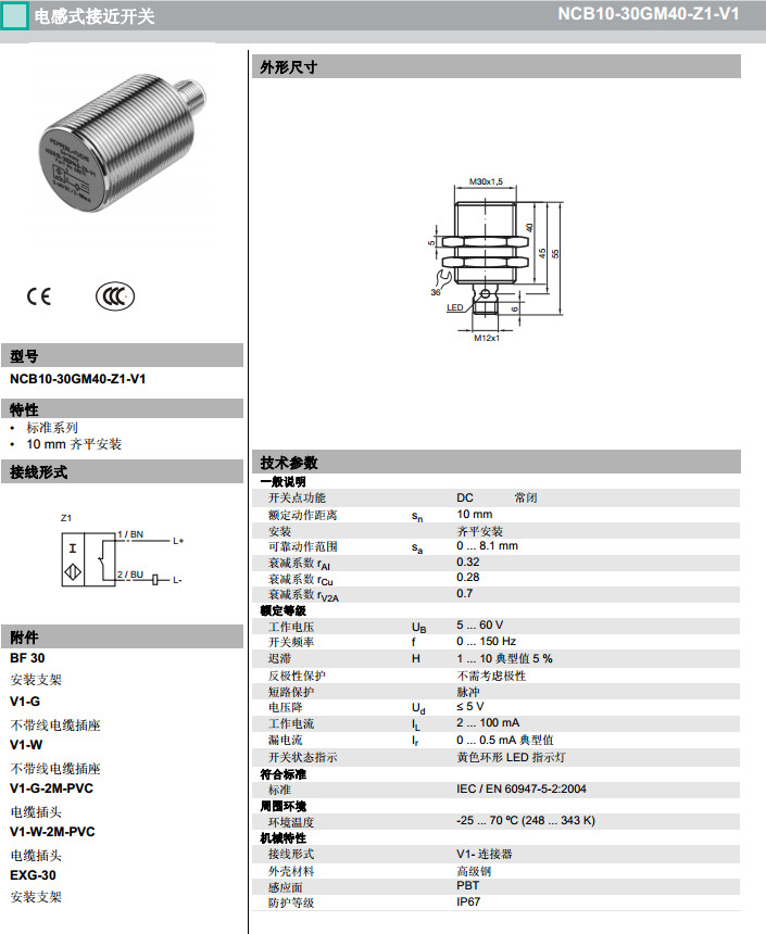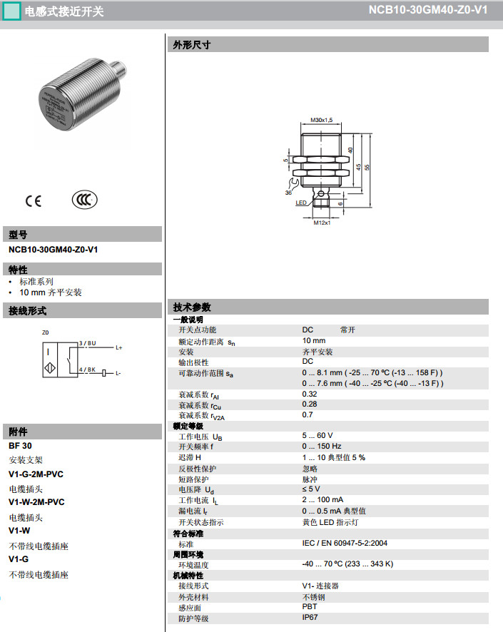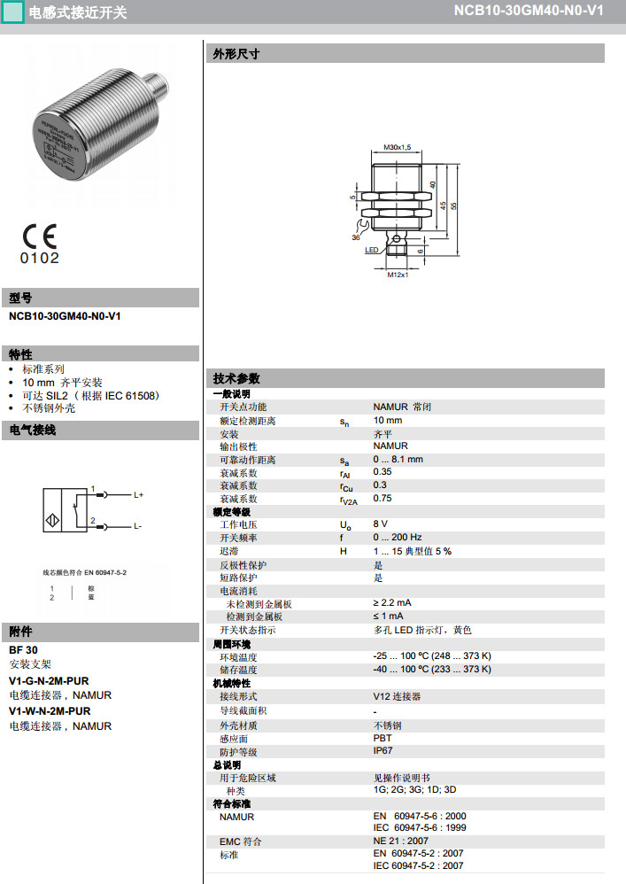 NCB10-30GM40-Z0-V1,NCB10-30GM40-Z1-V1,NCB10-30GM40-N0-V1感應式傳感器