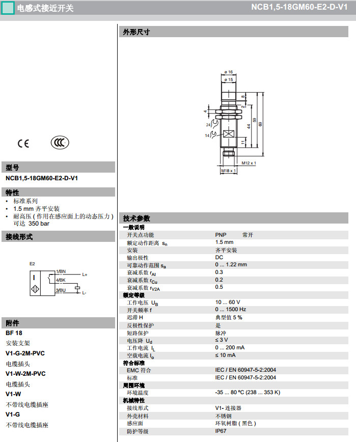 NCB1,5-18GM60-E2-D-V1感應(yīng)式傳感器