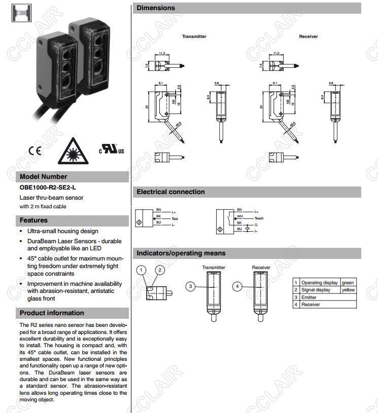 OBE1000-R2-SE0-L,OBE1000-R2-SE2-L,激光對(duì)射傳感器