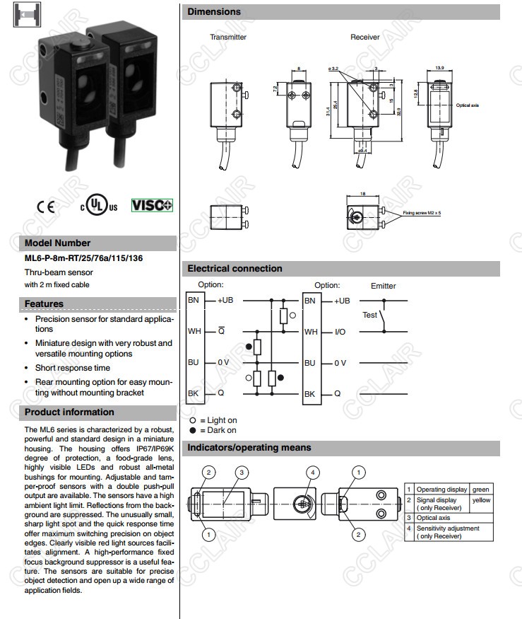 ML6-P-8m-RT/25/76a/115/136,對射型傳感器
