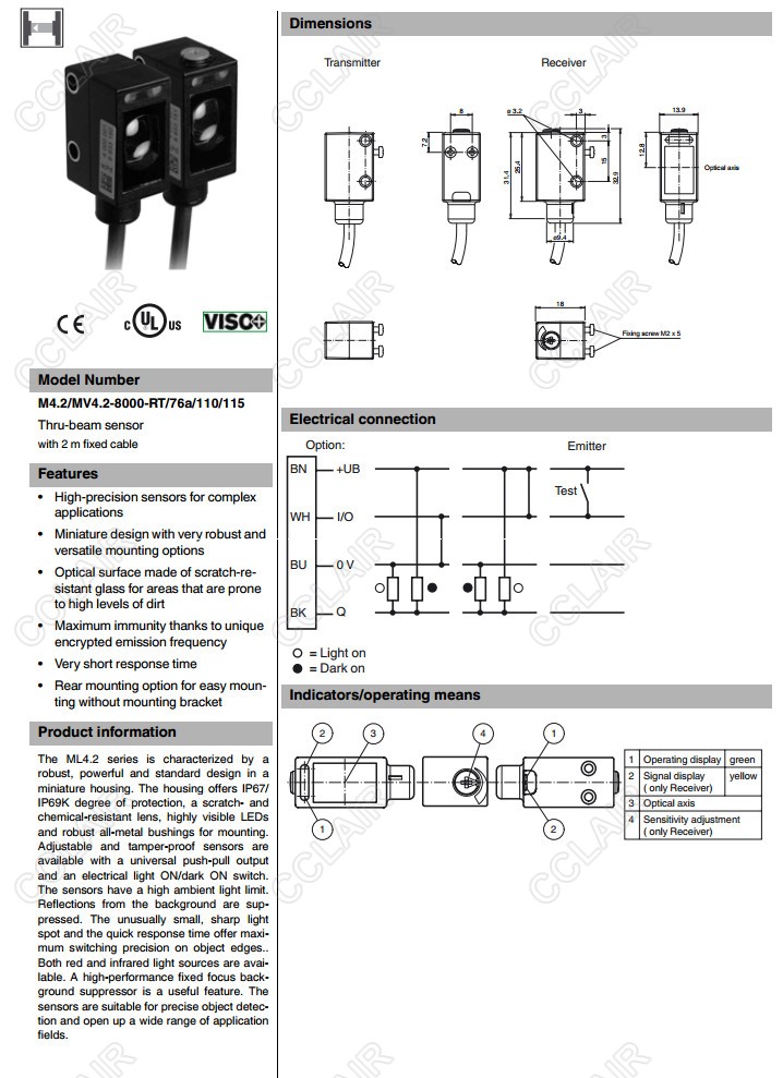 M4.2/MV4.2-8000-RT/76a/110/115,對射型傳感器