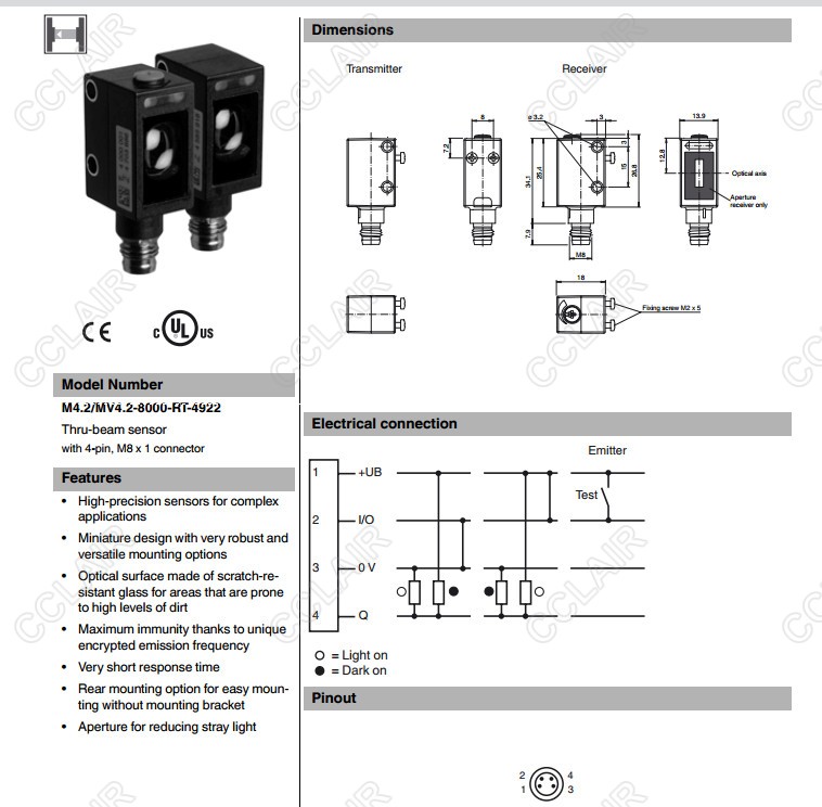 M4.2/MV4.2-8000-RT-4922,對射型傳感器