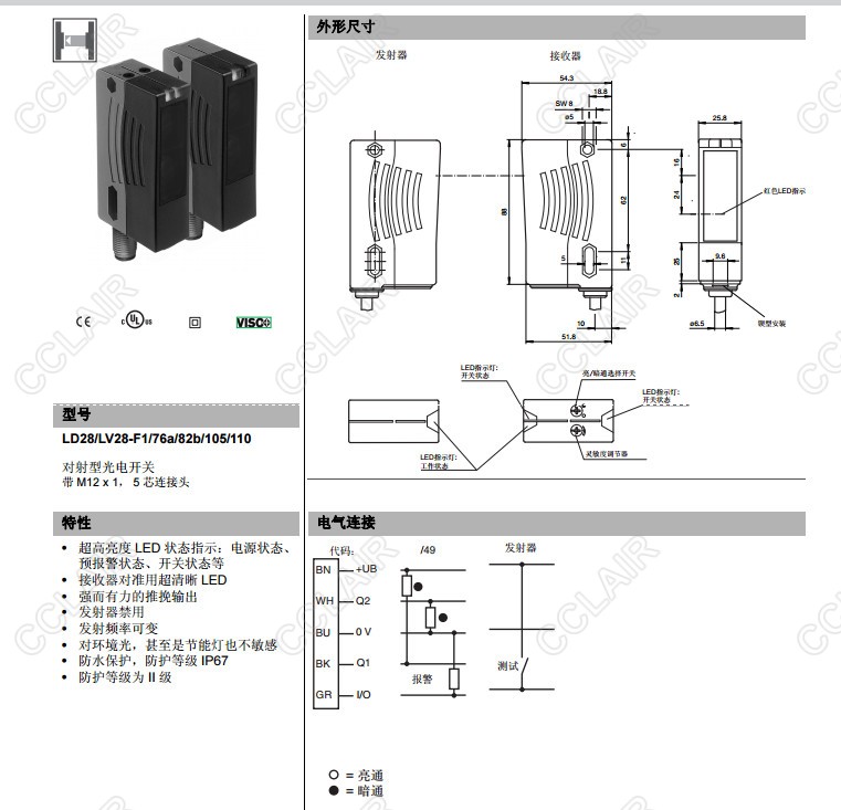 LD28/LV28-F1/49/76a/82b/105,LD28/LV28-F1/76a/82b/105/110,對射型傳感器