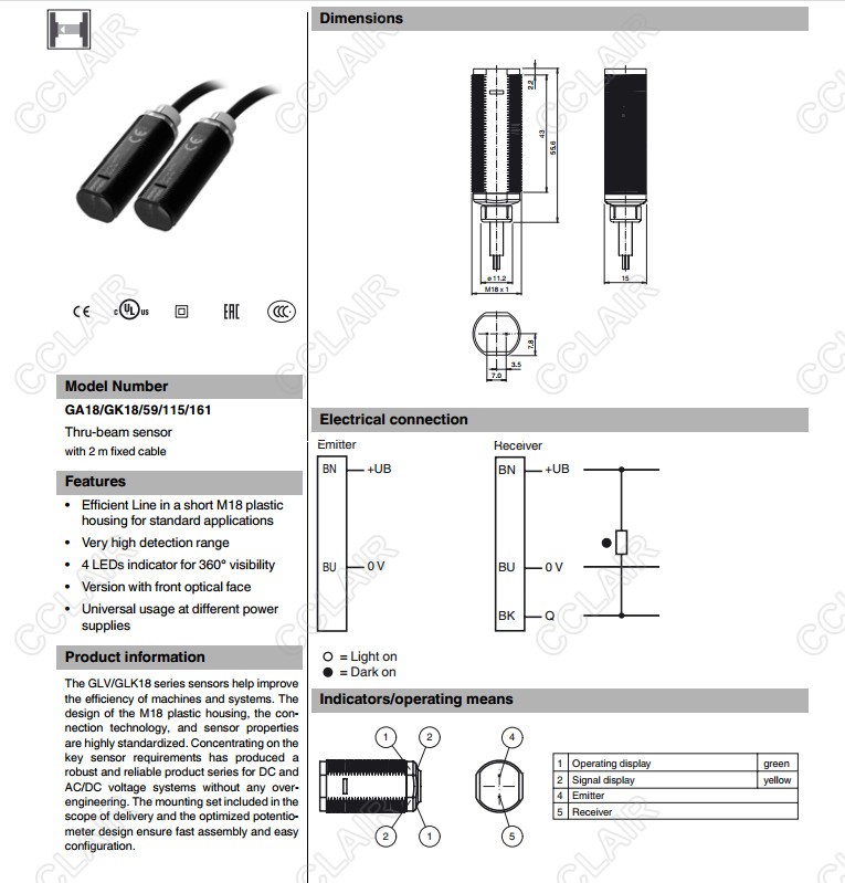 GA18/GK18/59/115/161,對(duì)射型傳感器