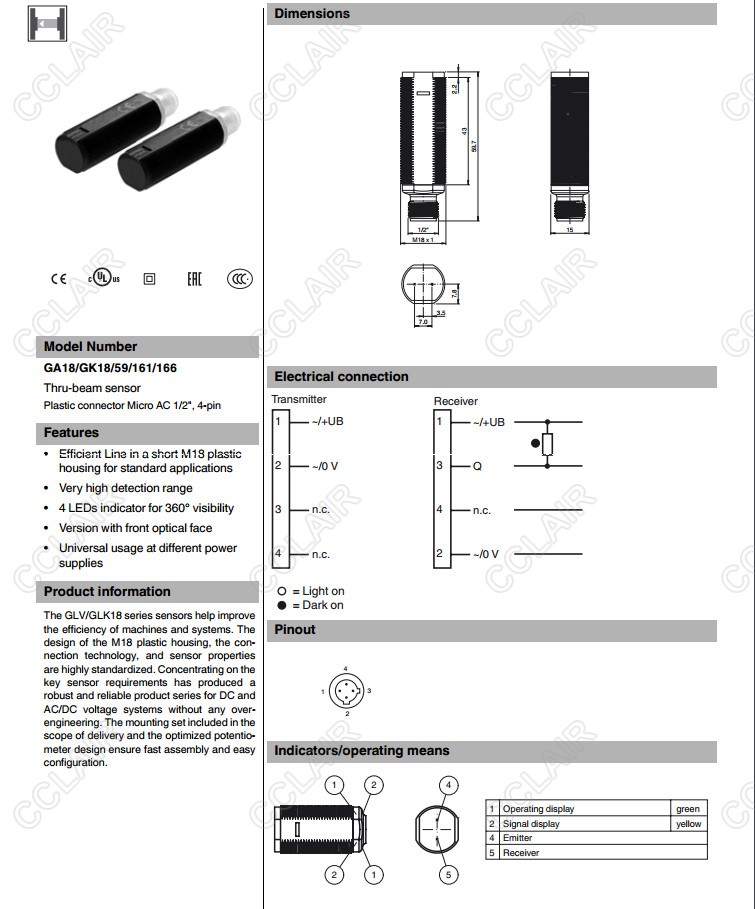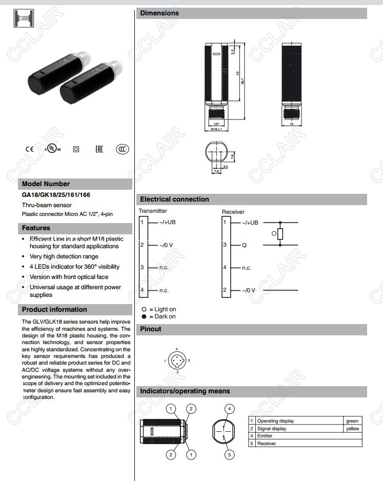 GA18/GK18/25/161/166,GA18/GK18/59/161/166,對(duì)射型傳感器