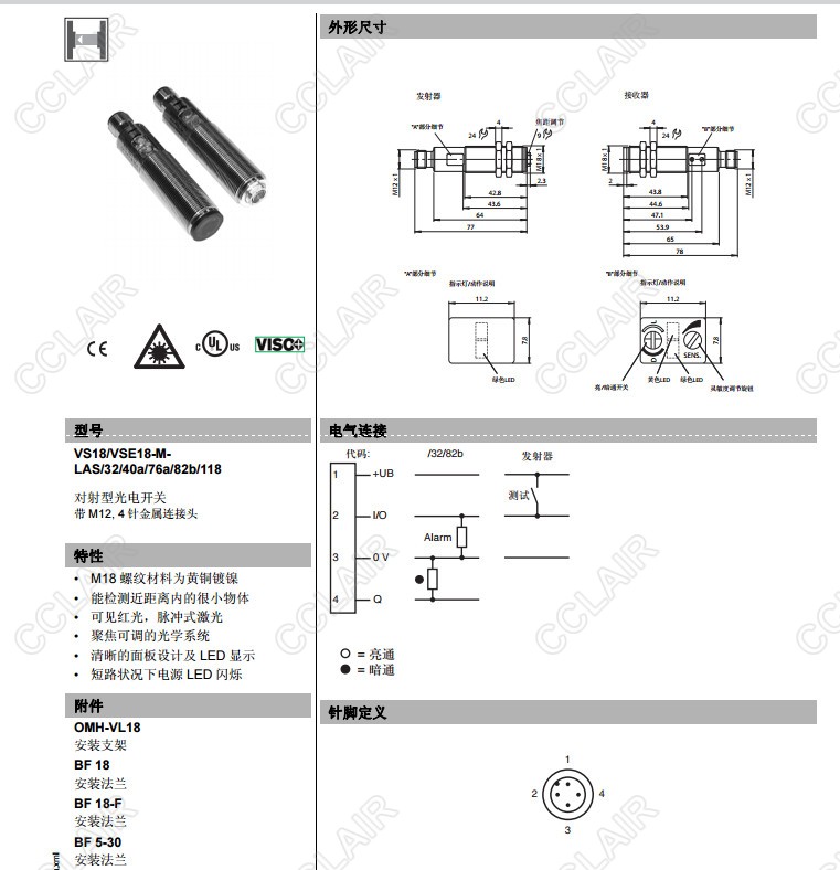 VS18/VSE18-M-LAS/32/40a/76a/82b/118,VS18/VSE18-M-LAS/40a/76a/118/128,對射型傳感器