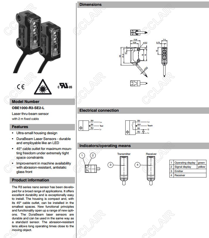 OBE1000-R3-SE2-L,對(duì)射型傳感器