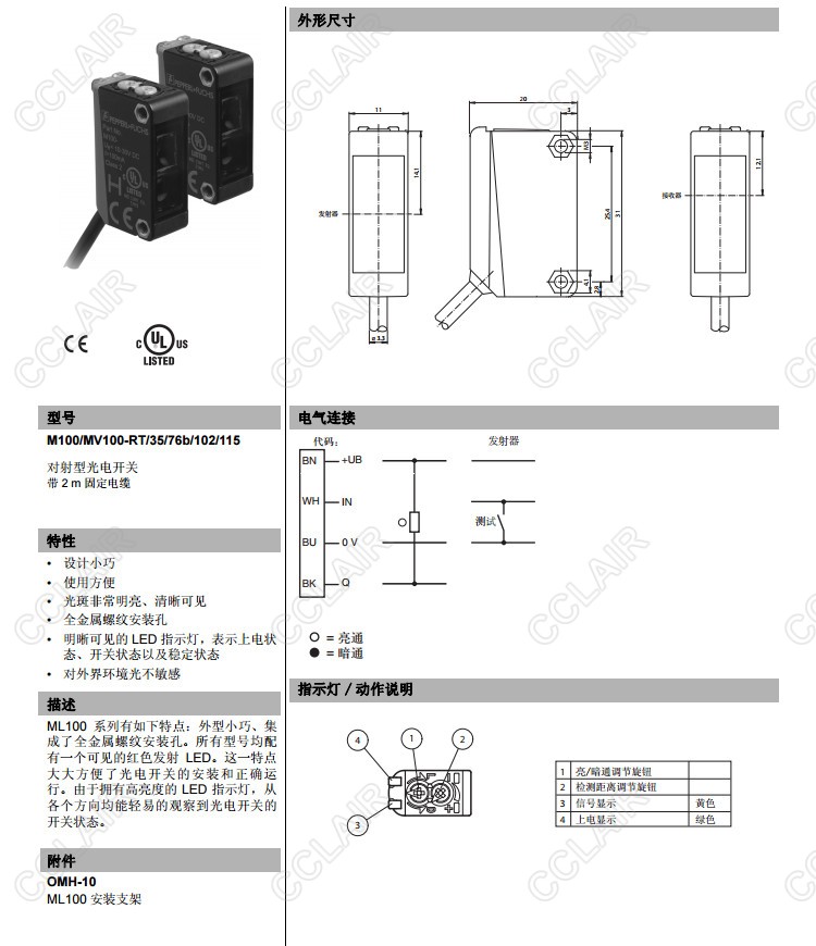 M100/MV100-RT/35/76b/102/115,對射型傳感器