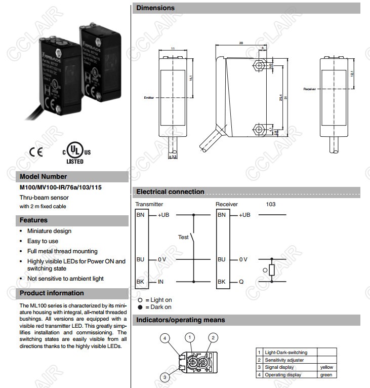 M100/MV100-6757/103,M100/MV100-IR/76a/103/115,對(duì)射型傳感器