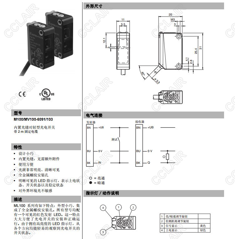 M100/MV100-6091/103,對(duì)射型傳感器