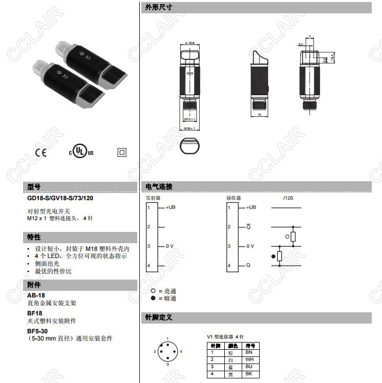 GD18-S/GV18-S/73/120,對射型傳感器