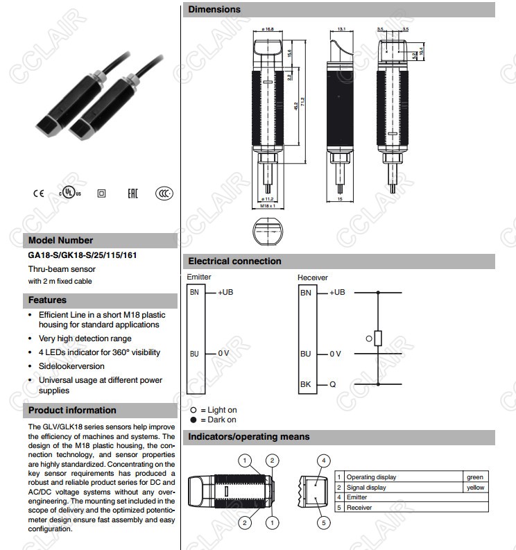 GA18-S/GK18-S/25/115/161,對射型傳感器