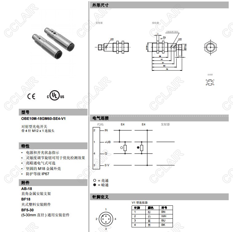 OBE10M-18GM60-SE4-V1,對(duì)射型傳感器