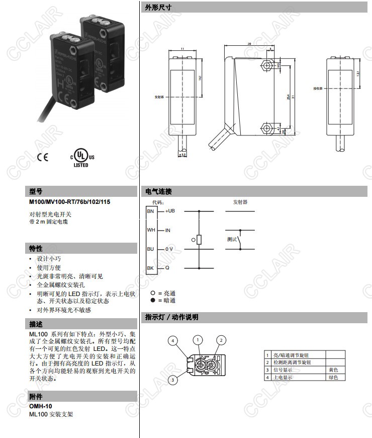 M100/MV100-RT/76b/102/115,對射型傳感器