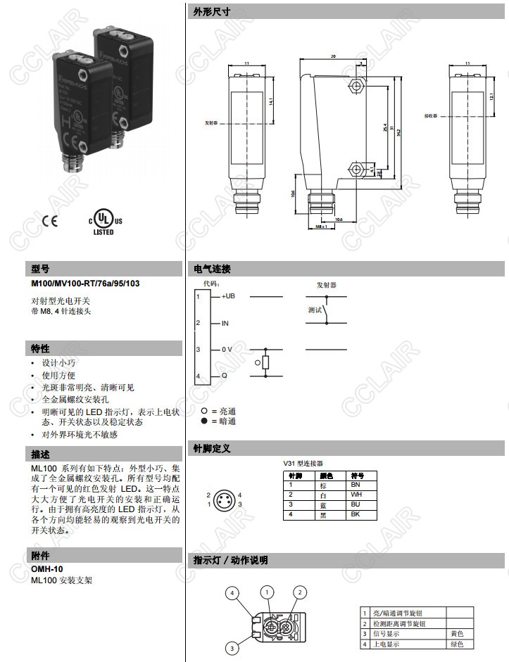 M100/MV100-RT/76a/95/103,對射型傳感器