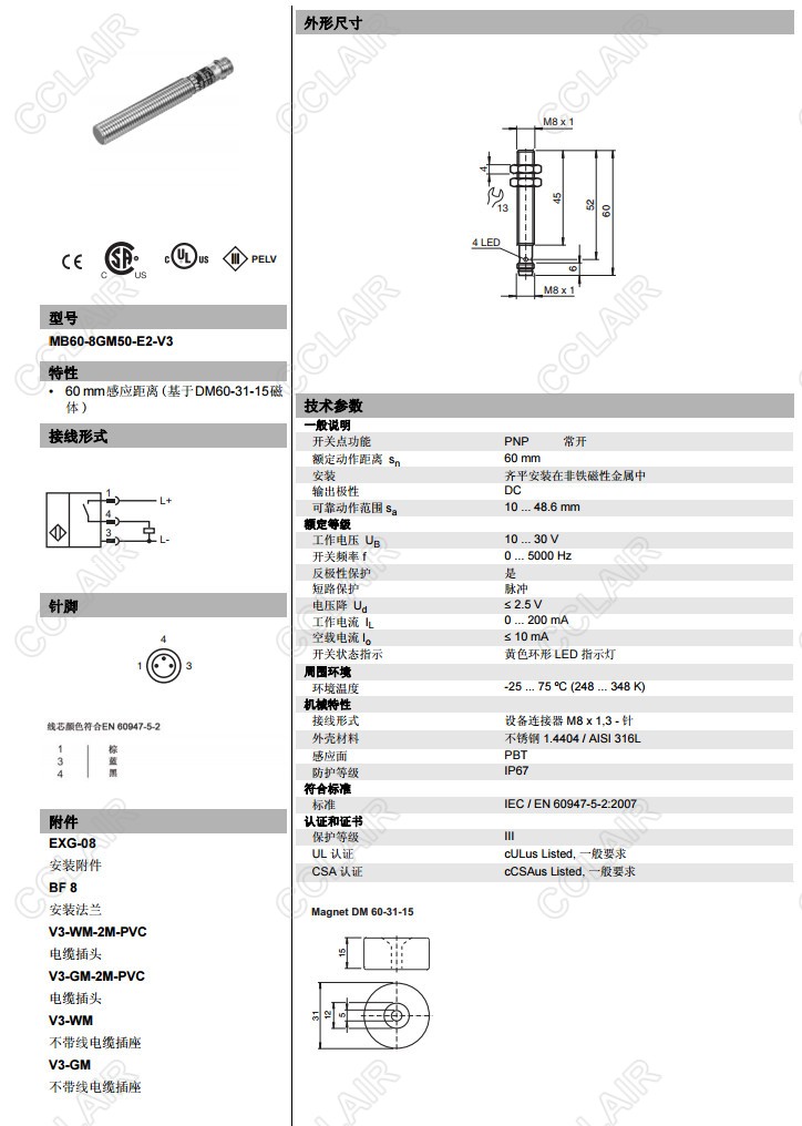 MB60-8GM50-E2-V3,磁式接近開關