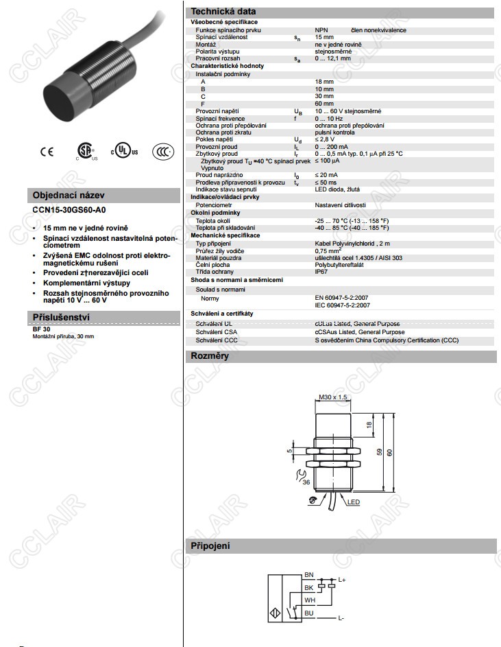 CCN15-30GS60-A0,電容式接近開(kāi)關(guān)