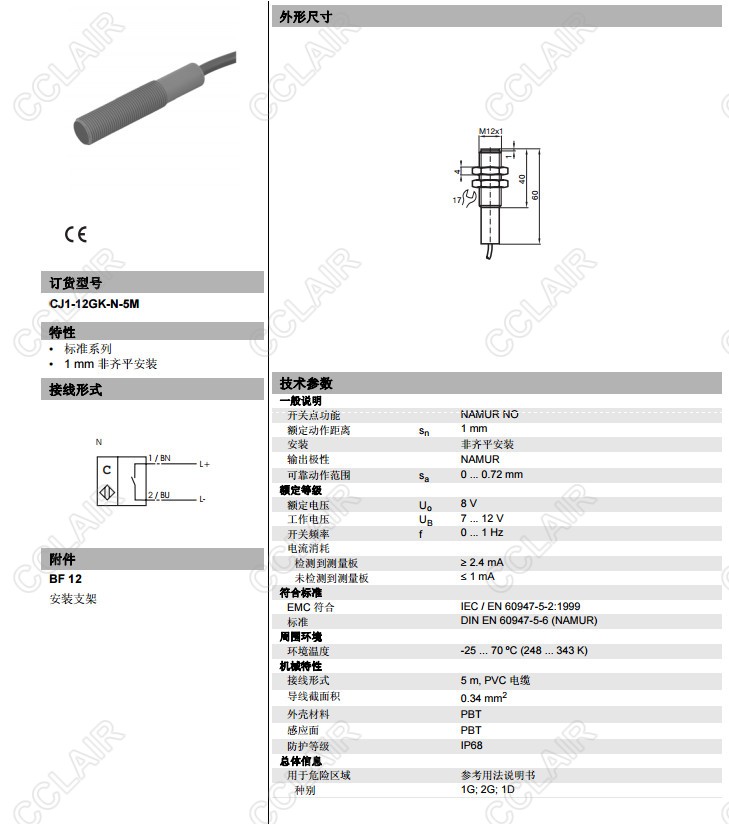 CJ1-12GK-N-5M,電容式接近開(kāi)關(guān)