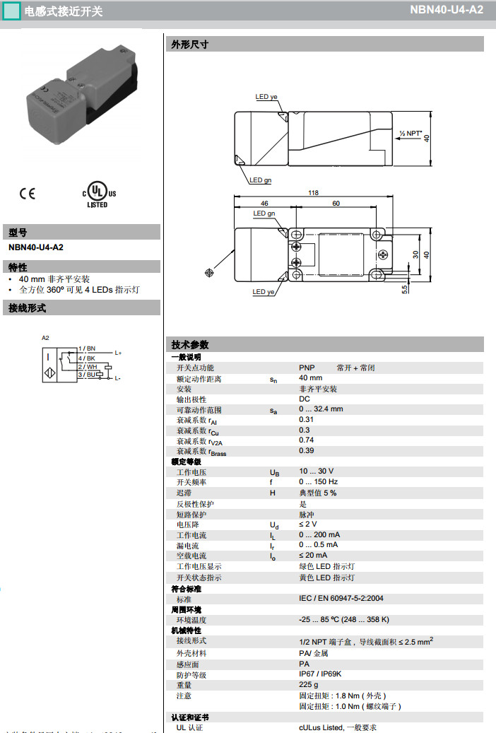 NBN40-U4-A2,NBN40-U4-E0感應式傳感器
