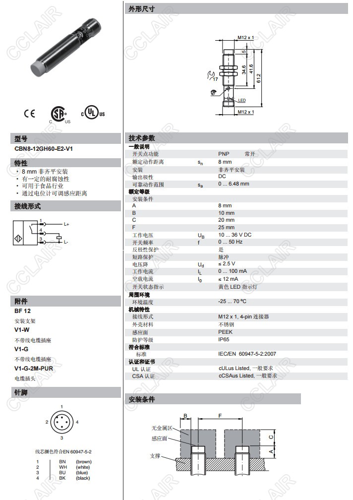 CBN8-12GH60-E2-V1,電容式接近開(kāi)關(guān)