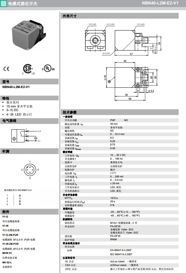 NBN40-L2M-A0-V1,NBN40-L2M-A2-V1,NBN40-L2M-E2-V1感應(yīng)式傳感器