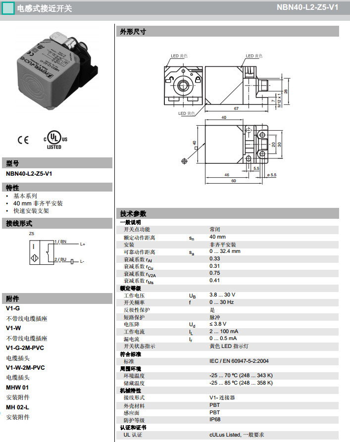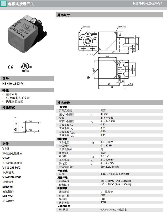 NBN40-L2-Z0-V1,NBN40-L2-Z4-V1,NBN40-L2-Z5-V1感應式傳感器