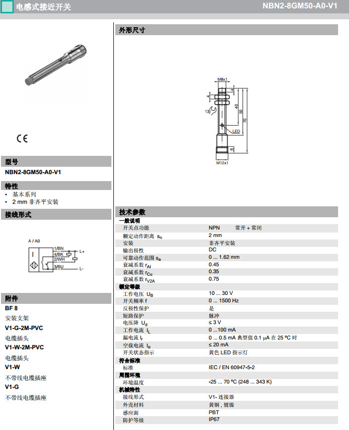 NBN2-8GM50-A0-V1,NBN2-8GM50-A2-V1感應式傳感器
