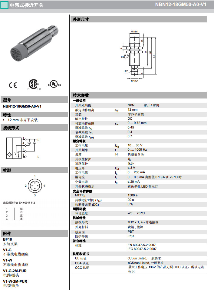 NBN12-18GM50-A0-V1感應式傳感器