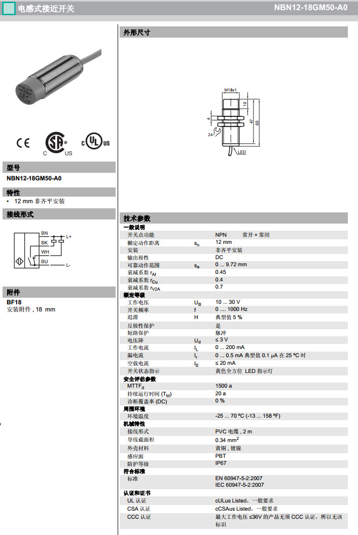 NBN12-18GM50-A0感應式傳感器