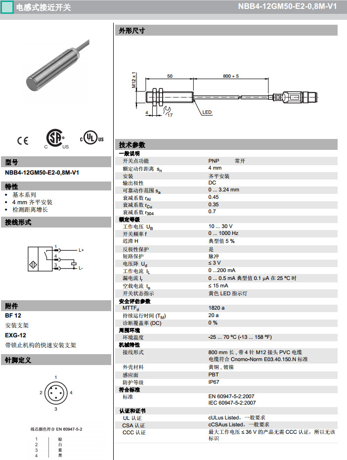 NBB4-12GM50-E2-0,8M-V1,NBB4-12GM50-E2-0,9M感應式傳感器