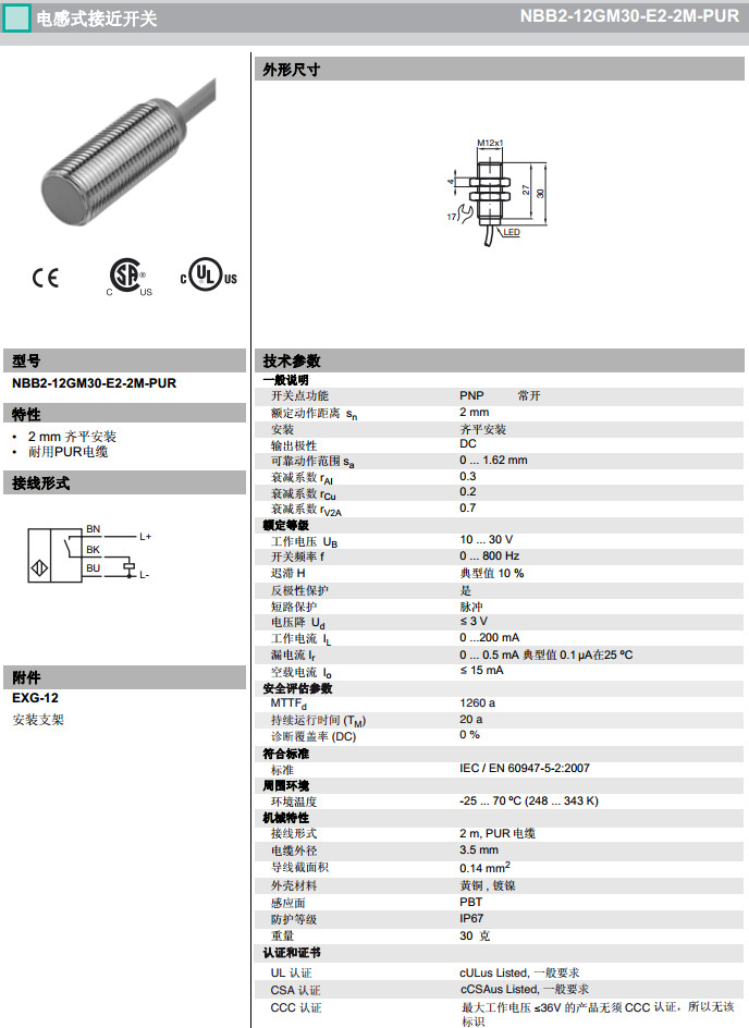 NBB2-12GM30-E2,NBB2-12GM30-E2-2M-PUR感應式傳感器