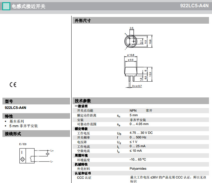 922LC5-A4N感應式傳感器