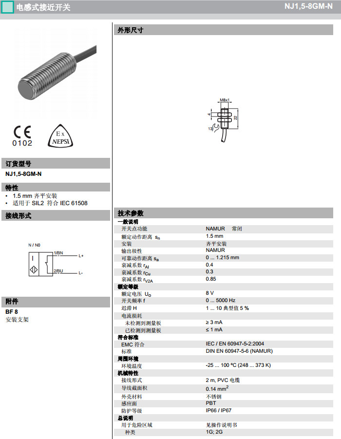 NJ1,5-8GM-N感應式傳感器