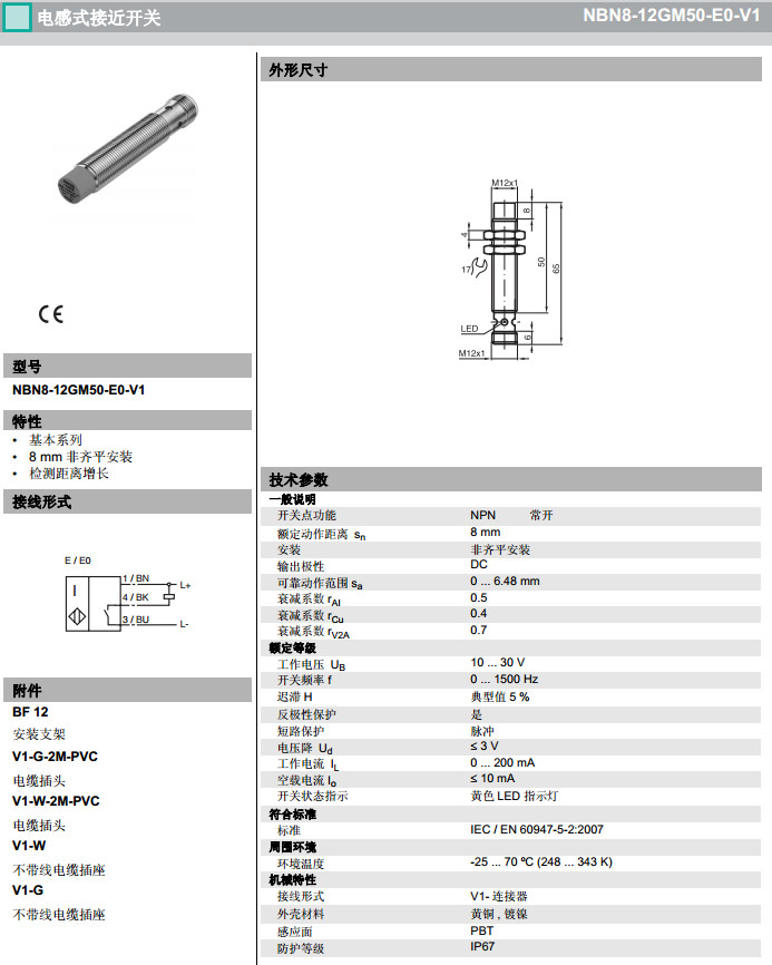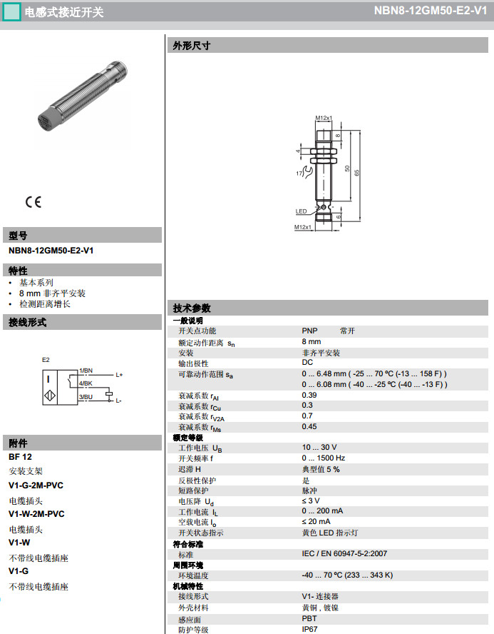 NBN8-12GM50-E0-V1,NBN8-12GM50-E2-V1電感式接近開關(guān)