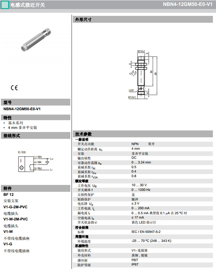 NBN4-12GM50-E0-V1,NBN4-12GM50-E2-V1電感式接近開關(guān)
