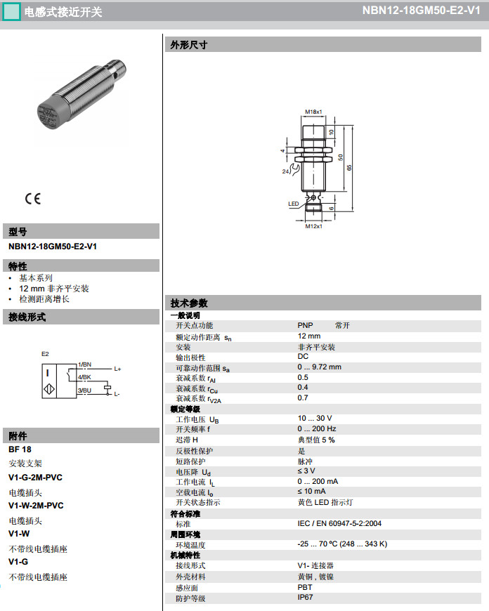 NBN12-18GM50-E2-V1電感式接近開關(guān)