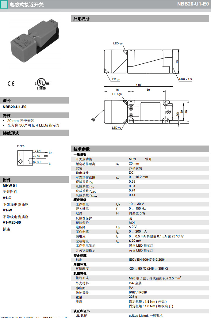 NBB20-U1-A2,NBB20-U1-E0,NBB20-U1-E2,NBB20-U1-Z2電感式接近開關(guān)