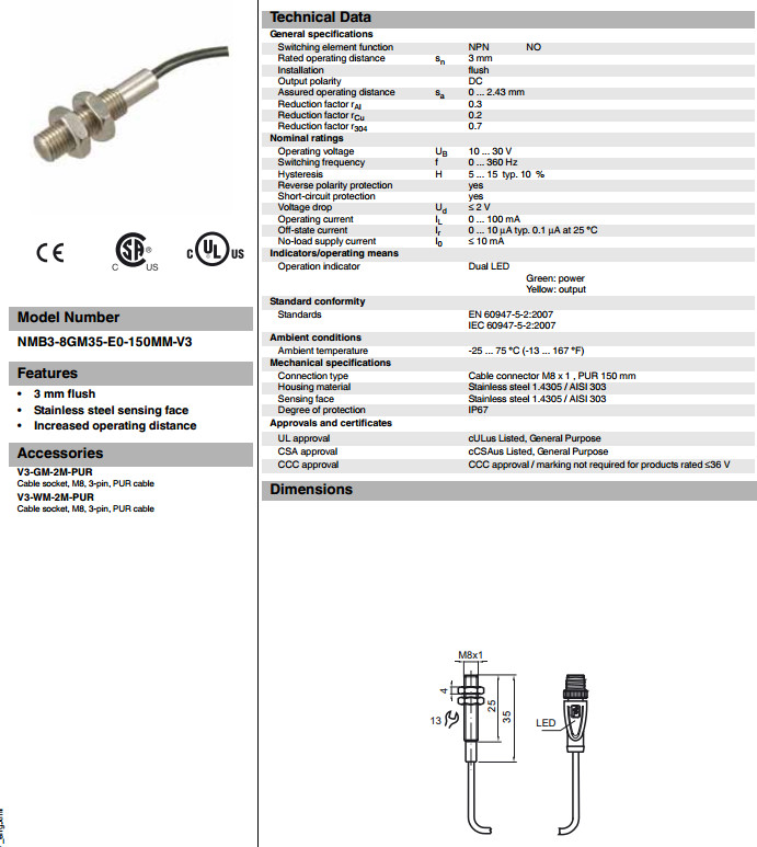 NMB3-8GM35-E0-150MM-V3電感式接近開關(guān)