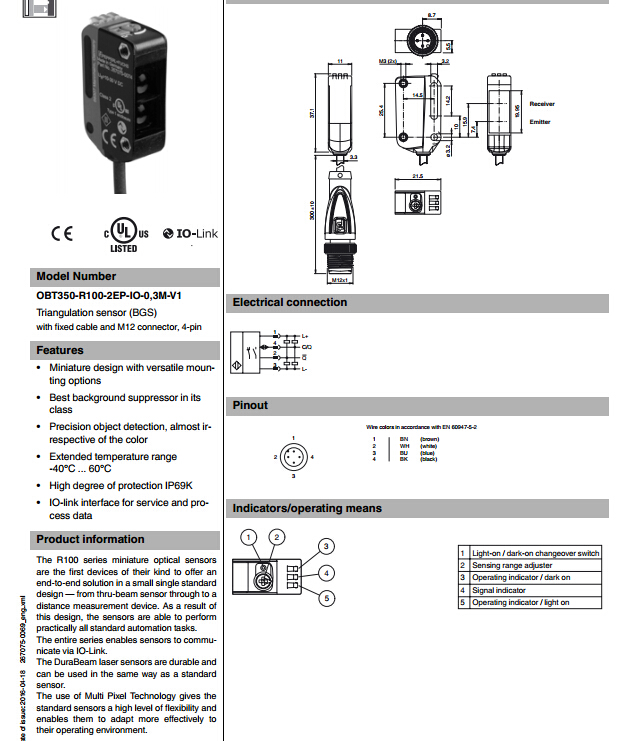 OBT350-R100-2EP-IO-0,3M-V1,漫反射型傳感器