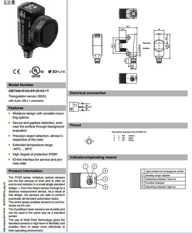 OBT300-R103-EP-IO-V3-1T,漫反射型傳感器