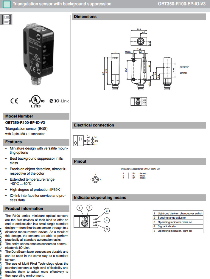 OBT350-R100-EP-IO-V3漫反射型傳感器