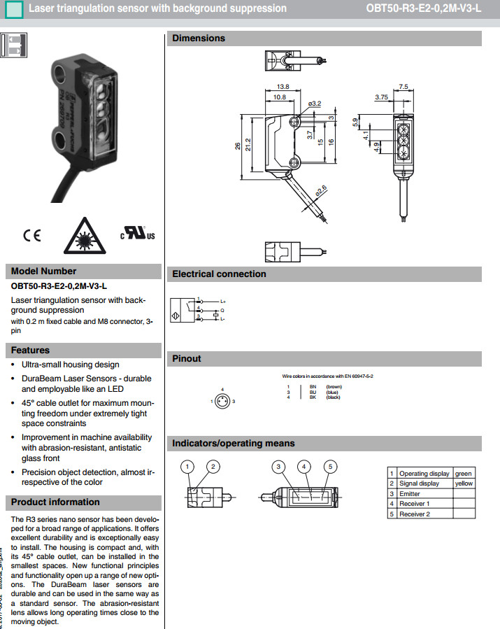 OBT50-R3-E2-0,2M-V3-L漫反射型傳感器
