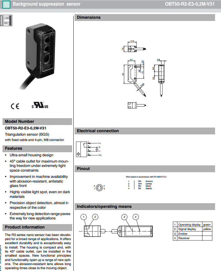 OBT50-R2-E3-0,2M-V31漫反射型傳感器