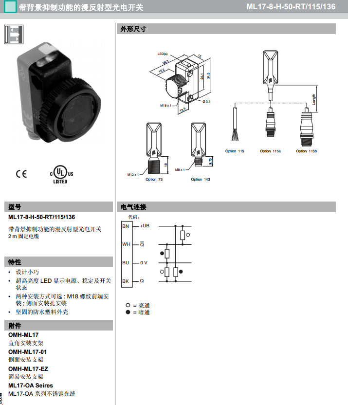 ML17-8-H-100-RT/115/136,ML17-8-H-50-RT/115/136漫反射型傳感器