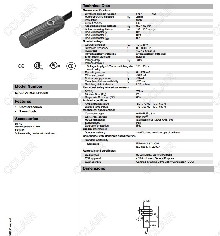 NJ2-12GM40-E2,NJ2-12GM40-E2-10M,NJ2-12GM40-E2-5M