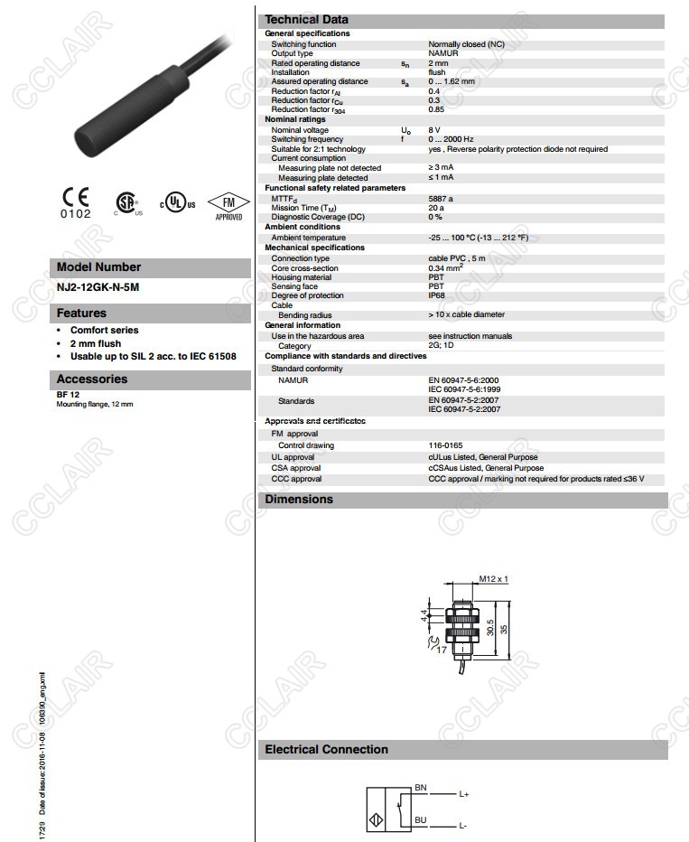 NJ2-12GK-N-5M,電感式接近開(kāi)關(guān)