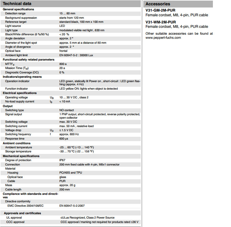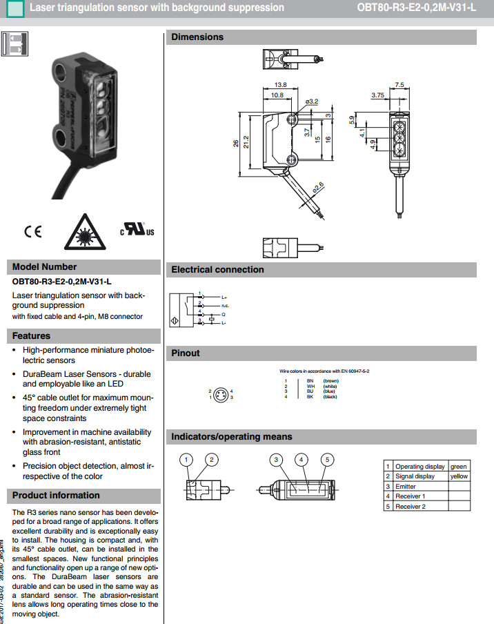 OBT80-R3-E2-0,2M-V31,OBT80-R3-E2-0,2M-V31-L漫反射型傳感器